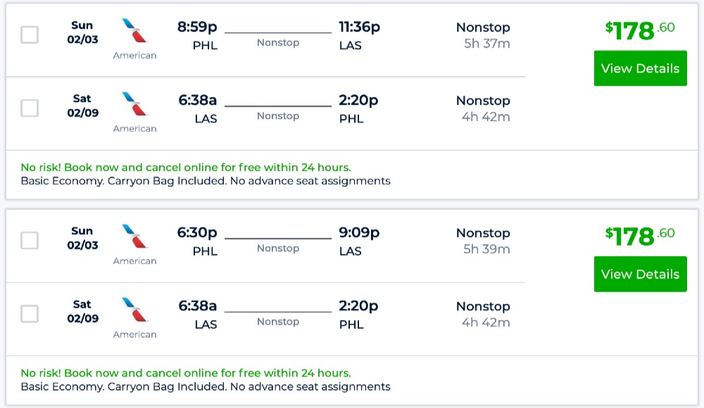 Amazing deal: Philadelphia to Las Vegas and vice versa for as low as $178 roundtrip.