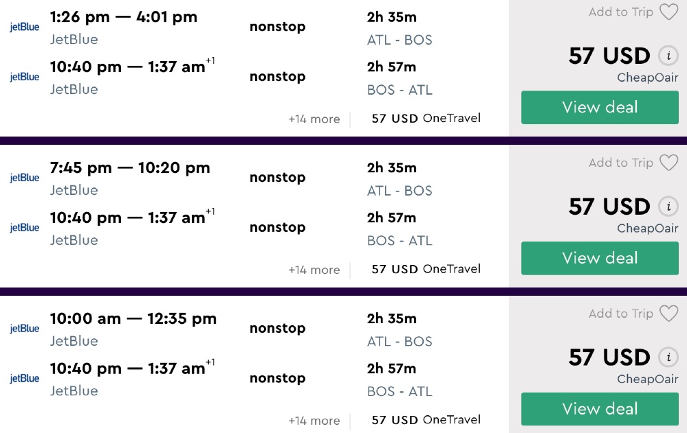 Amazing deal: Atlanta to Boston and vice versa flight round-trip as low as $57.