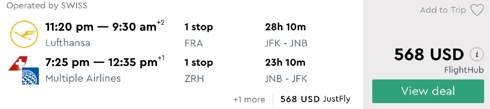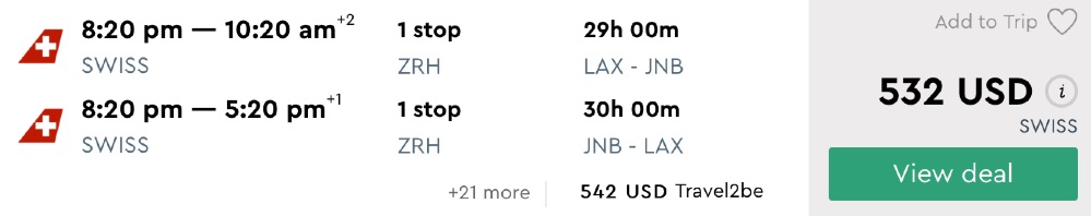 Amazing deal: Washington DC, Los Angeles or New York to South Africa flight roundtrip as low as $532.