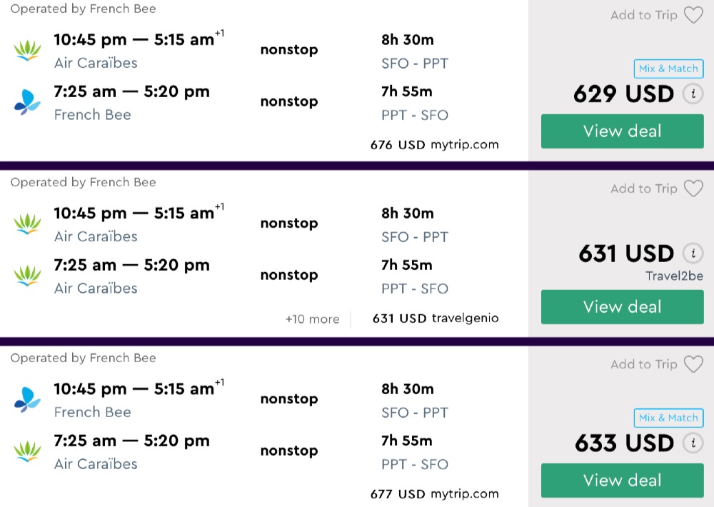 Amazing deal: San Francisco to Tahiti, French Polynesia flight round-trip as low as $629.