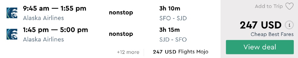 Amazing deal: San Francisco to San Jose Cabo, Mexico and vice versa flight round-trip as low as $249.