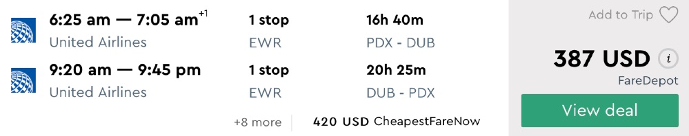 Portland to Dublin, Ireland from $387 round-trip