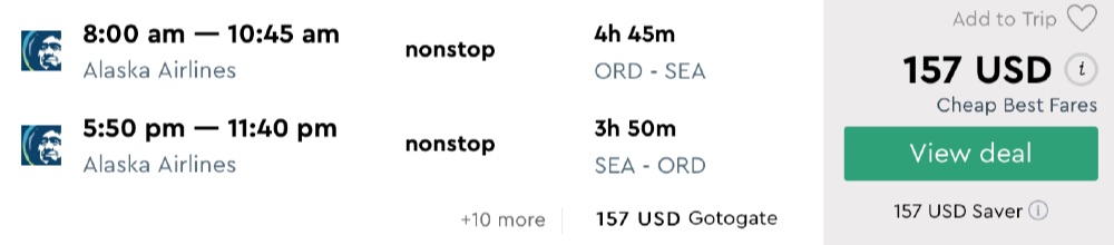 Amazing deal: Chicago to Seattle and vice versa flight, round-trip as low as $157.