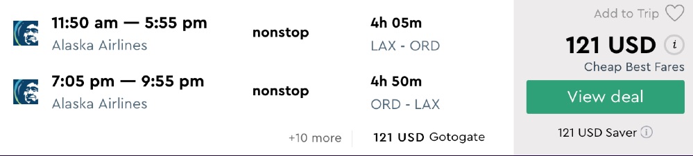 Amazing deal: Los Angeles to Chicago and vice versa flight, round-trip as low as $121.