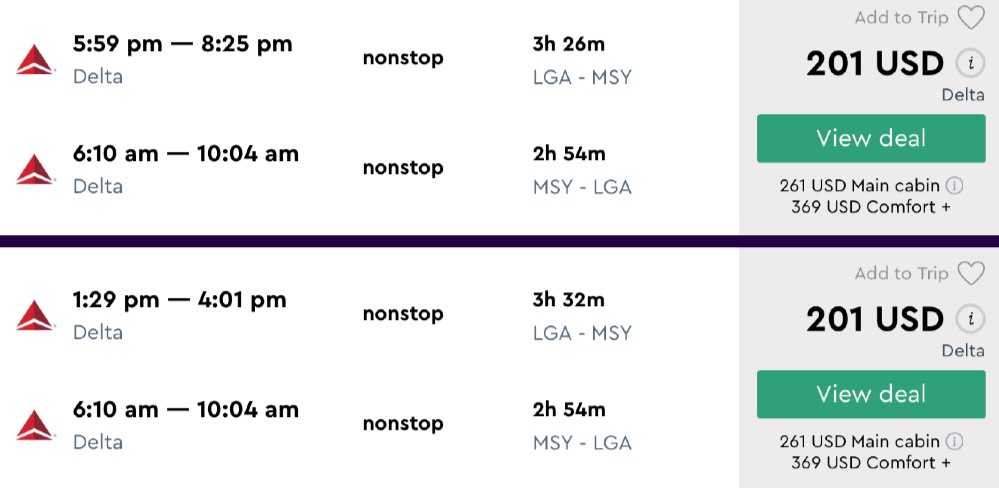 Amazing deal: New York to New Orleans and vice versa flight, round-trip as low as $201.