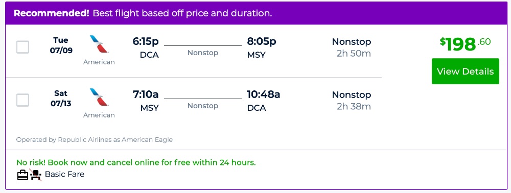 Amazing deal: Washington DC to New Orleans and vice versa flight, round-trip as low as $198.
