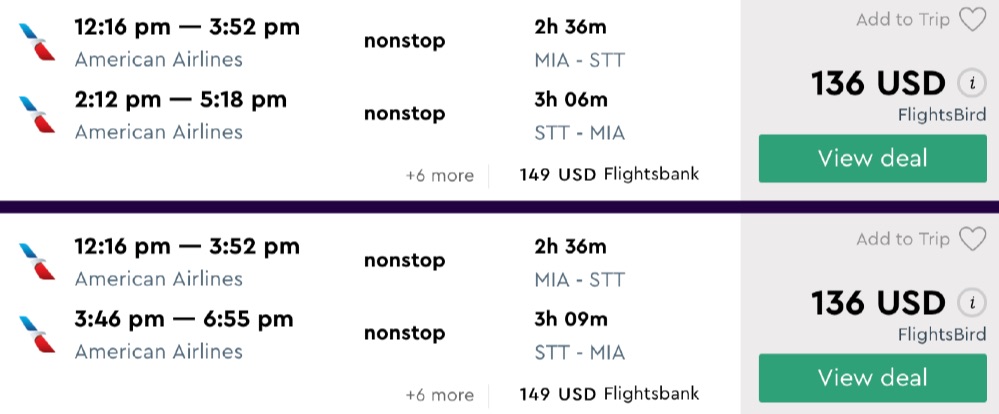 Amazing deal: Miami to U.S. Virgin Islands: St. Thomas flights round-trip as low as $136.