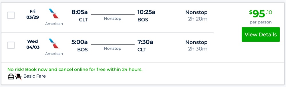Amazing deal: Charlotte to Boston and vice versa flight roundtrip as low as $95.