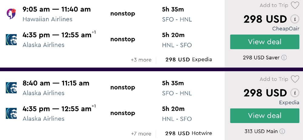 Amazing deal: San Francisco or Los Angeles to Hawaii: Oahu and vice versa flights round-trip as low as $298.