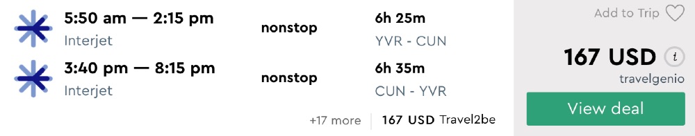 Amazing deal: Vancouver BC to Cancun, Mexico flight round-trip as low as $167.