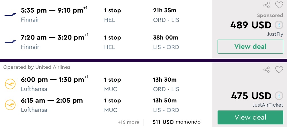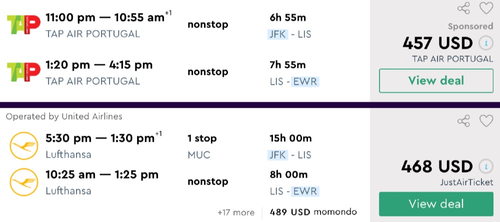 Amazing deal: New York or Chicago to Lisbon (Portugal) flight round-trip as low as $457.