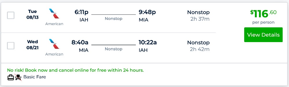 Amazing deal: Houston to Miami and vice versa flight round-trip as low as $116.