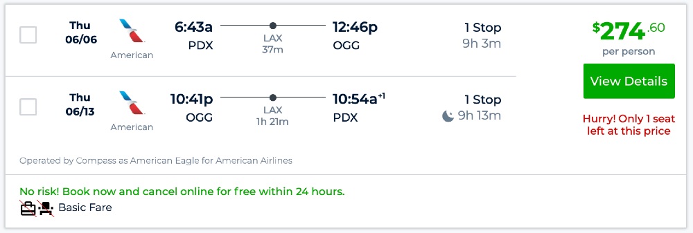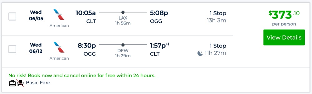 Amazing deal: CLT, PDX, SEA, BOS, IAH to Hawaii: Maui and vice versa flights round-trip as low as $275.