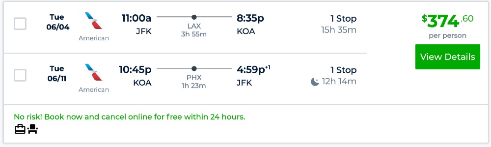 Amazing deal: New York to Hawaii: Kailua-Kona and vice versa flights round-trip as low as $375.