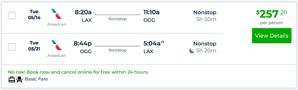 Amazing deal: Los Angeles to Hawaii: Kona (The Big Island) or Kahului (Maui) and vice versa flights round-trip as low as $257.