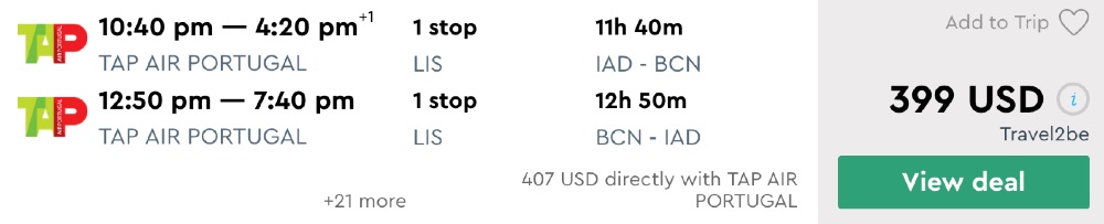 Amazing deal: Washington DC to Barcelona, Madrid, Paris, Amsterdam flights round-trip as low as $399.