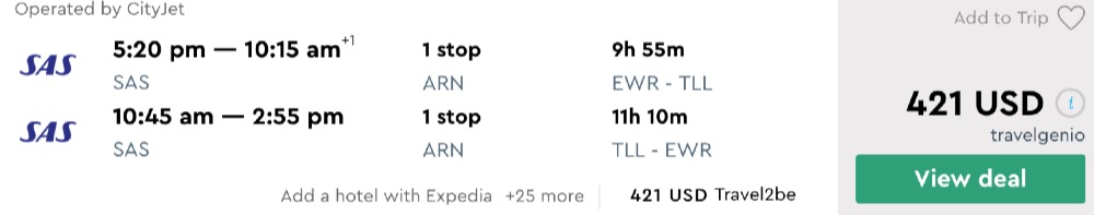 Amazing deal: Boston, Newark, Washington DC, Chicago to Tallinn, Estonia flight round-trip as low as $421.