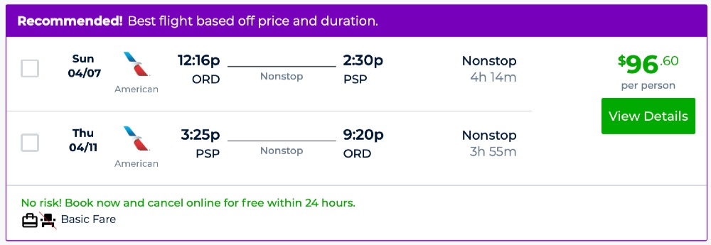 Amazing deal: Chicago to Palm Springs, California flights round-trip as low as $96.