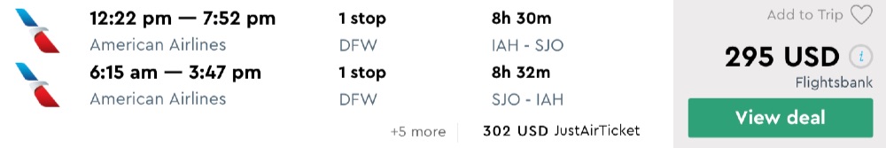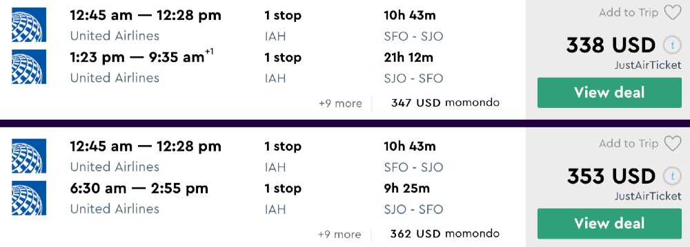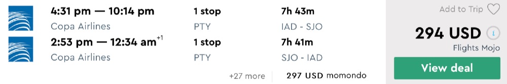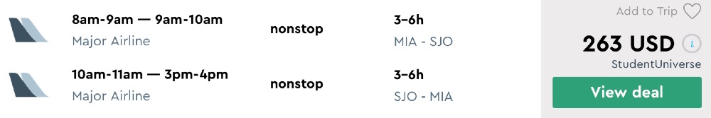 Amazing deal: MCO, IAH, DEN, SFO, MIA, IAD, BOS, MSY to San Jose, Costa Rica flight round-trip as low as $227.