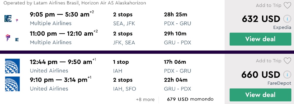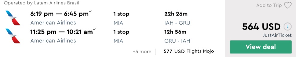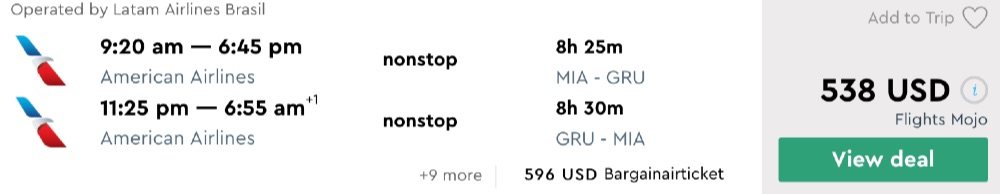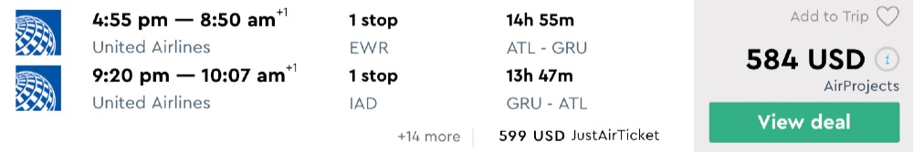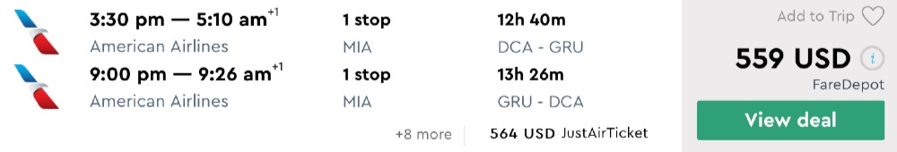 Amazing deal: MIA (nonstop), NYC, ATL, CLT, DCA, IAH, PDX, DFW to Sao Paulo (Brazil) flight round-trip as low as $538.