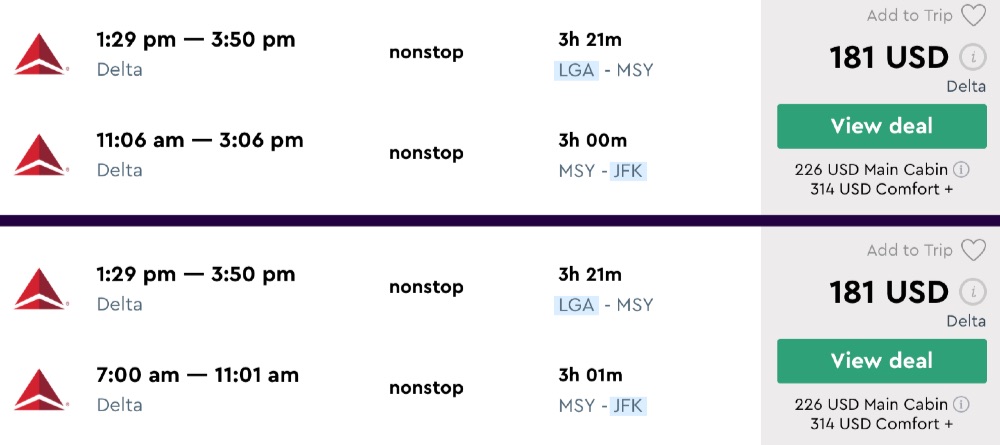 Amazing deal: New York to New Orleans and vice versa flight, round-trip as low as $181.