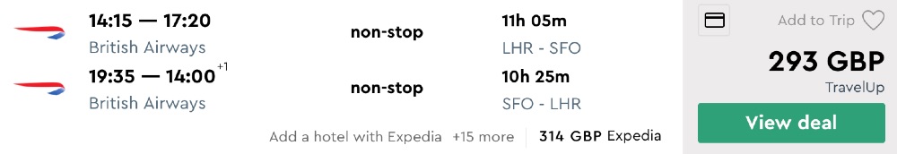 Amazing deal: London to the USA: San Francisco or Los Angeles flight round-trip as low as £293.