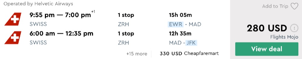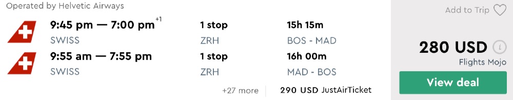 Amazing deal: Boston or New York to Madrid, Spain flight round-trip as low as $280.
