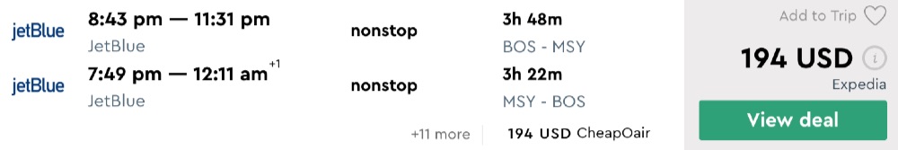 Amazing deal: Boston to New Orleans and vice versa flight, round-trip as low as $194.