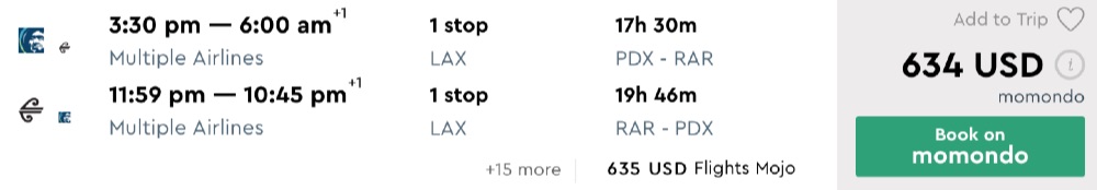 Amazing deal: Portland, Seattle, San Francisco, Salt Lake City, Las Vegas, Denver to Cook Islands flight round-trip as low as $634.