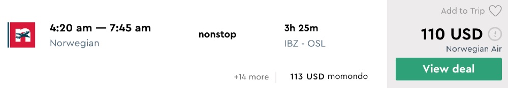 Ibiza, Balearic island (Spain) to Oslo from $110 one-way