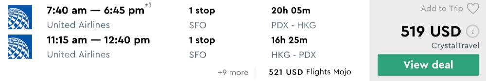 Amazing deal: San Francisco (nonstop), Los Angeles, Portland, Seattle to Hong Kong flight roundtrip as low as $455.