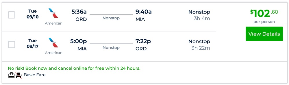 Amazing deal: Chicago to Miami and vice versa flight, roundtrip as low as $102.