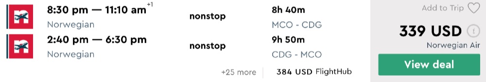 Amazing deal: Orlando to Paris (France) flight round-trip as low as $339.