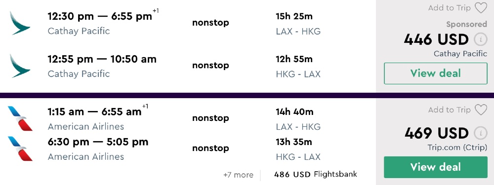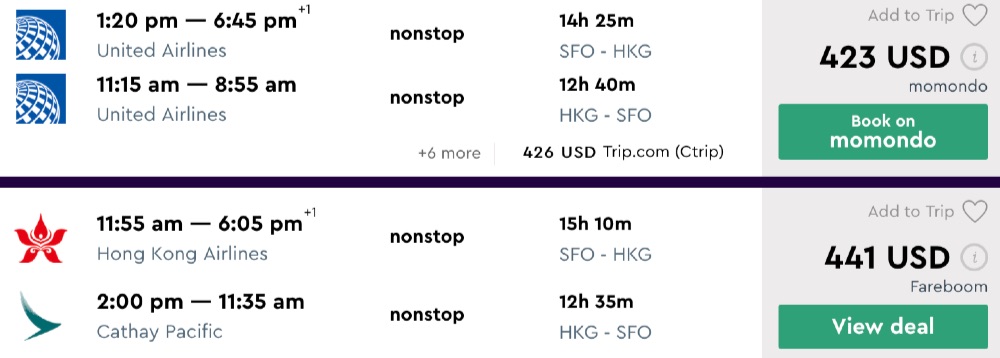 Amazing deal: San Francisco and Los Angeles to Hong Kong roundtrip as low as $423.