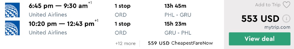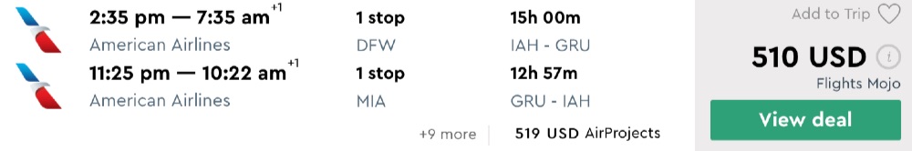 Amazing deal: Dallas, Philadelphia, Charlotte, Los Angeles, Chicago, Houston, Phoenix to Sao Paulo, Brazil flight round-trip as low as $510.
