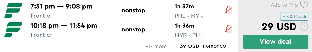 Philadelphia to Myrtle Beach for $29 round-trip nonstop