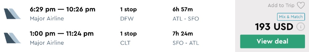 Amazing deal: Atlanta to San Francisco and vice versa flight round-trip as low as $193.