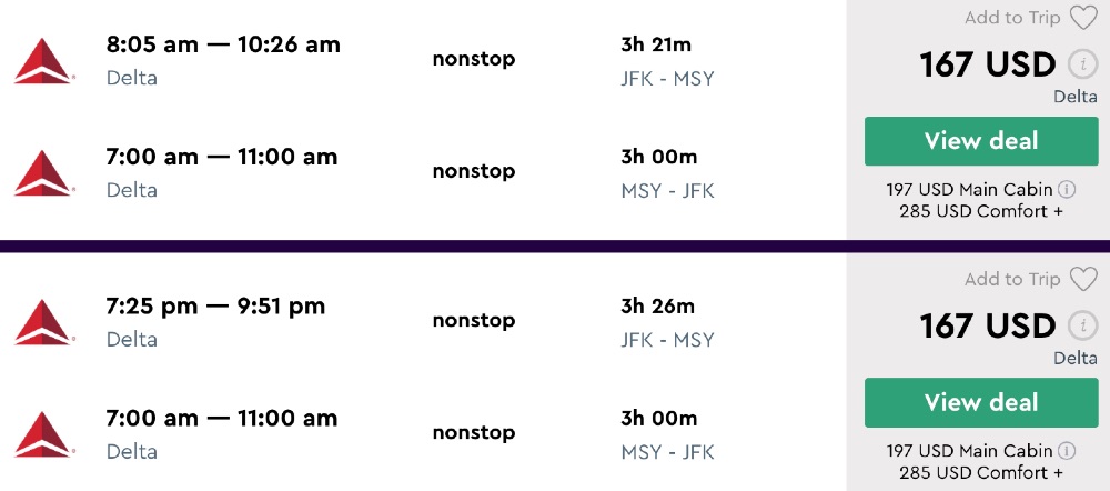 Amazing deal: New York to New Orleans and vice versa flight, round-trip as low as $167.