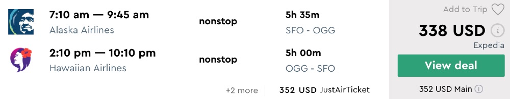 Amazing deal: San Francisco to Hawaii: Maui and vice versa flights round-trip as low as $338.