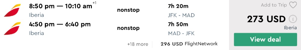 Amazing deal: New York to Spain: Madrid or Barcelona flights round-trip as low as $273.