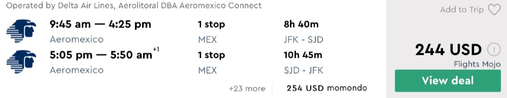 Amazing deal: New York, Washington DC, Los Angeles to San Jose Cabo, Mexico flight round-trip as low as $244.
