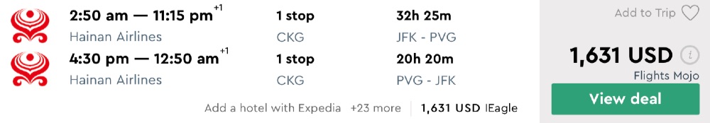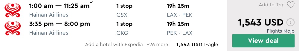 Amazing deal: New York and Los Angeles to China: Beijing, or Shanghai business class flight round-trip as low as $1543.