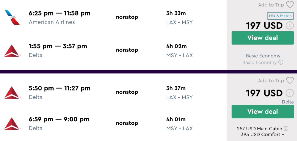 Amazing deal: Los Angeles to New Orleans and vice versa flight, round-trip as low as $197.