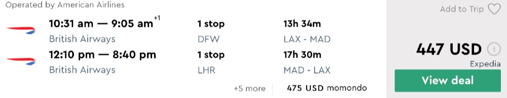 Amazing deal: Dallas or Los Angeles to Madrid, Spain flights round-trip as low as $447.