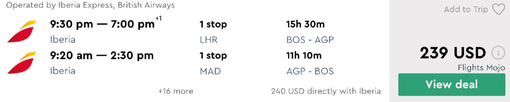 Amazing deal: Boston to Spain: Malaga, Barcelona, Madrid (nonstop), Bilbao flight round-trip as low as $239.