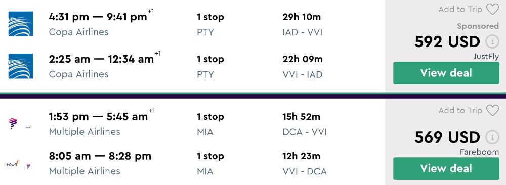 Amazing deal: USA to Bolivia: Santa Cruz flight round-trip as low as $569.
