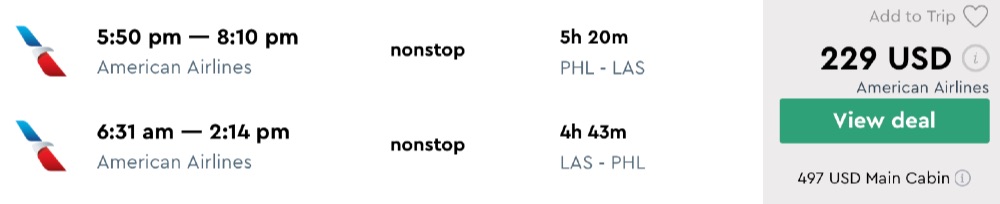 Nonstop via AA! Charlotte or Philadelphia to Las Vegas and vice versa from $206 round-trip