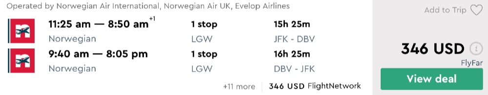 Amazing deal: New York to Croatia: Dubrovnik flight round-trip as low as $346.