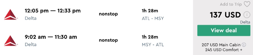 Amazing deal: Atlanta, New York, Baltimore, Philadelphia to New Orleans and vice versa flight, round-trip as low as $137.