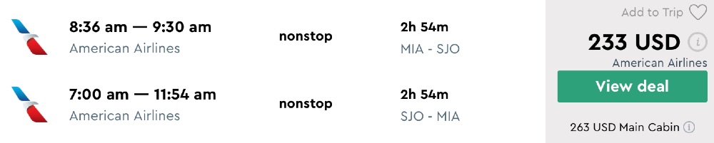 Amazing deal: Miami to Costa Rica: San Jose flight round-trip as low as $233.